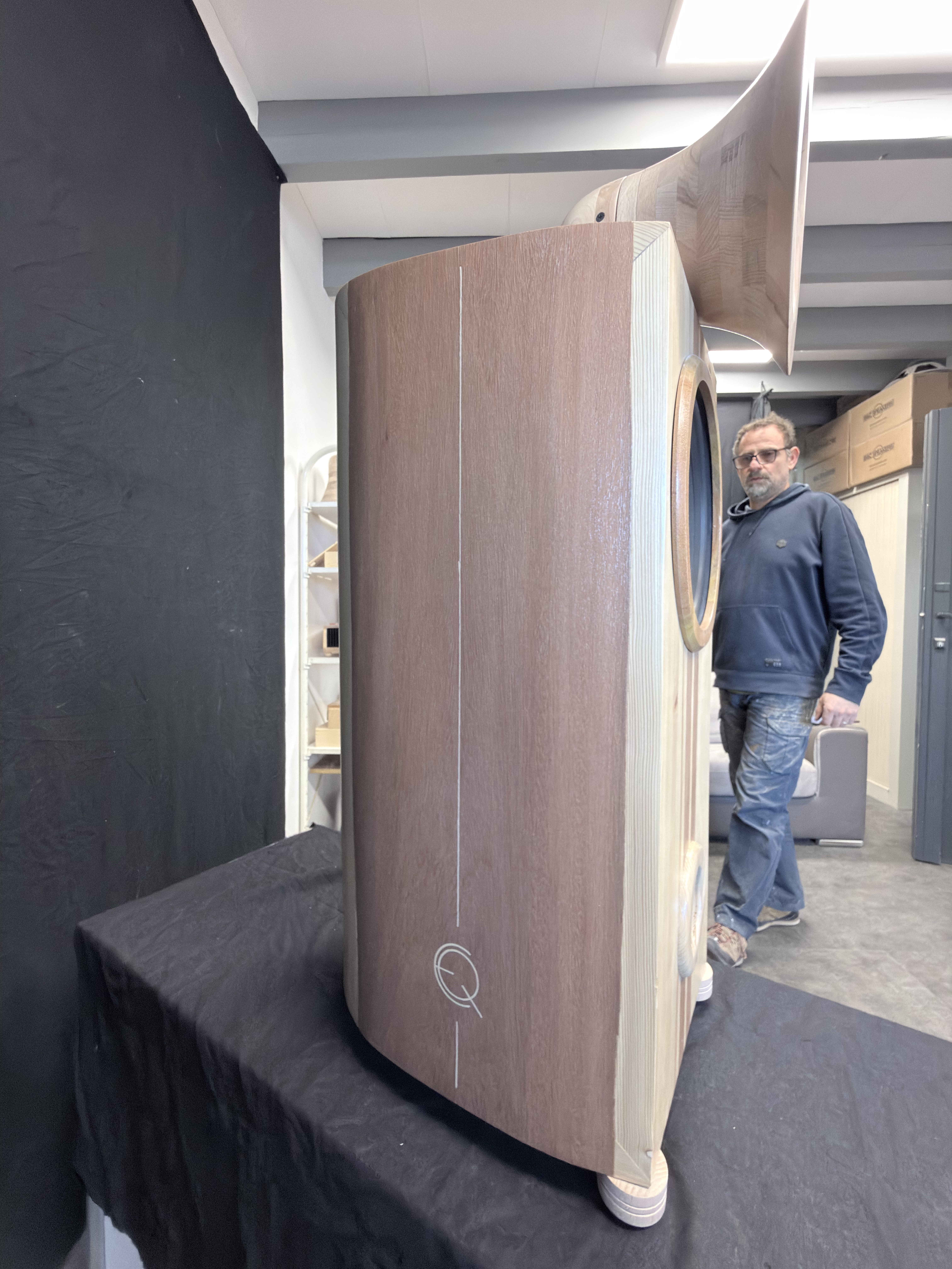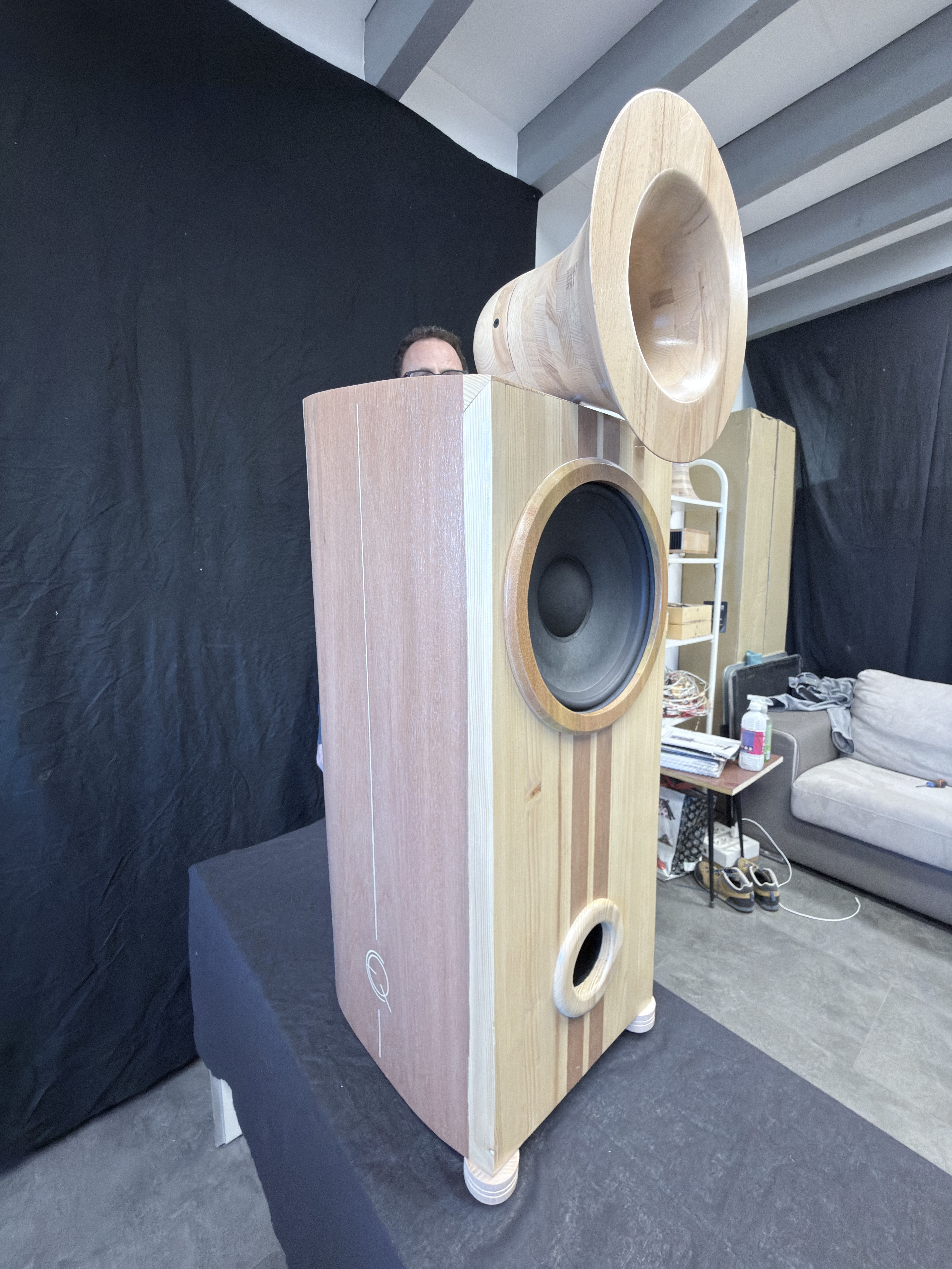 - 25cm Membrane Papier monté dans une enceinte antirésonnante composée de 17 couches de bois de différentes densités