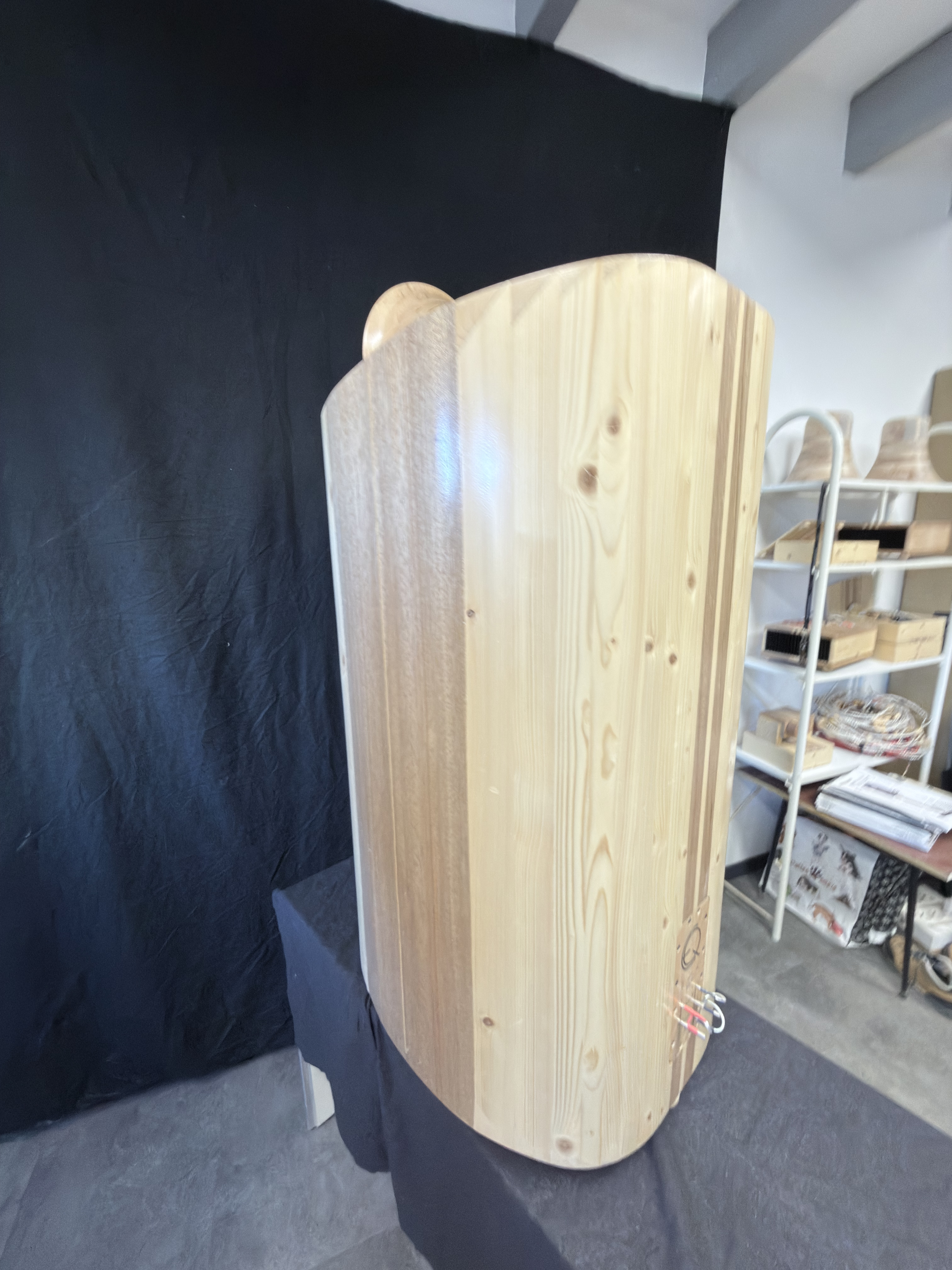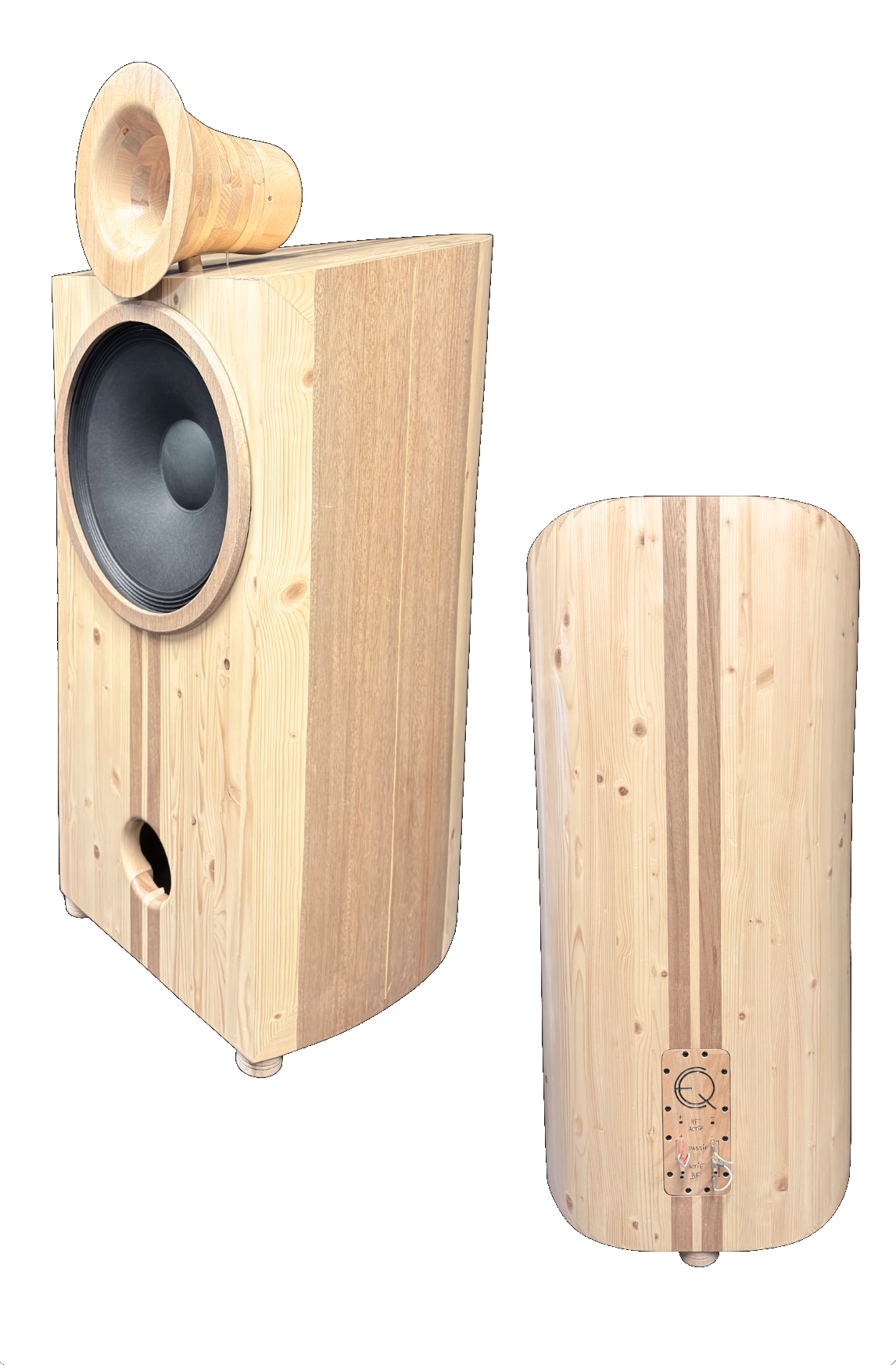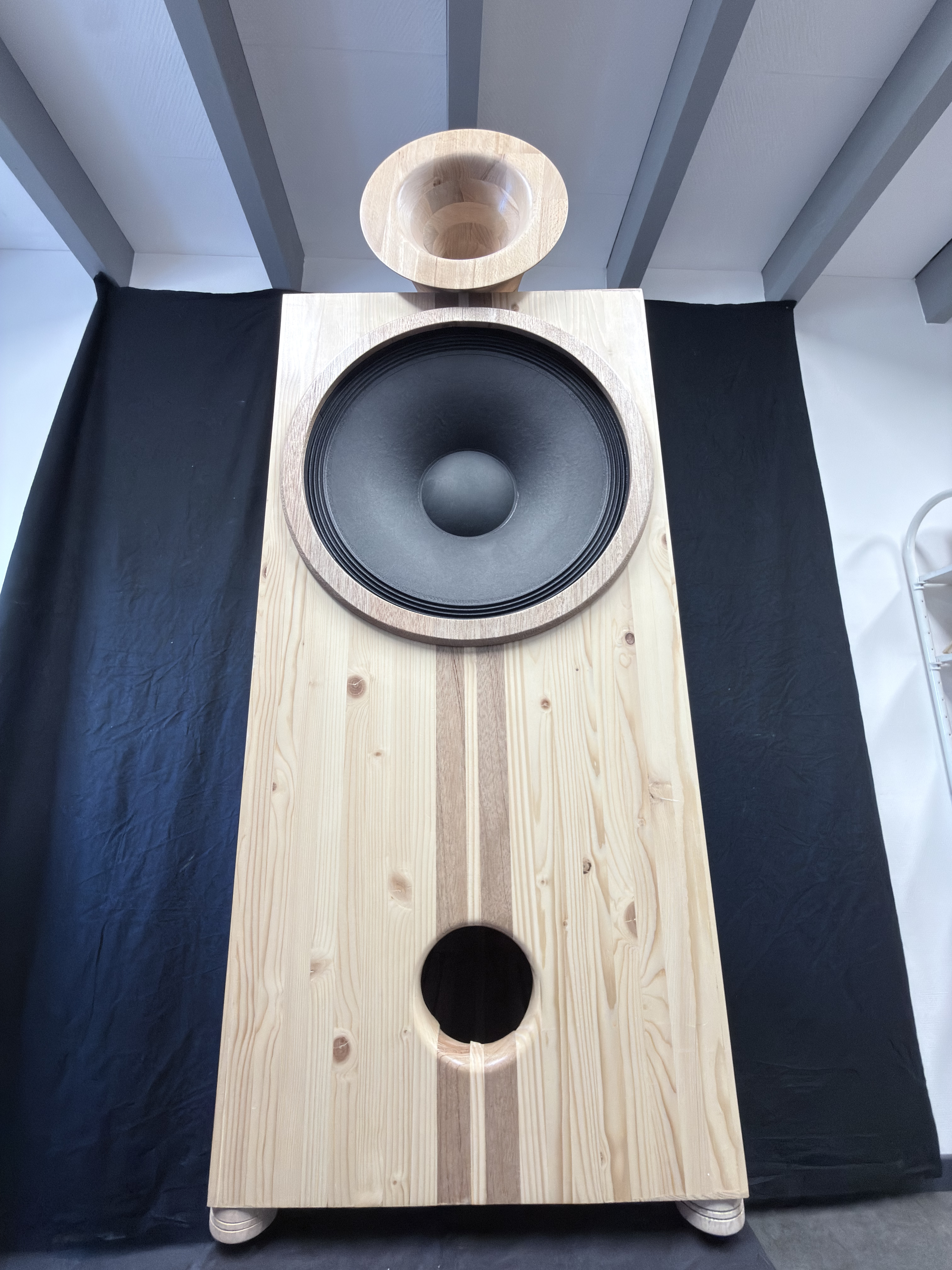 - 38cm Membrane Papier monté dans une enceinte antirésonnante composée de 23 couches de bois de différentes densités
