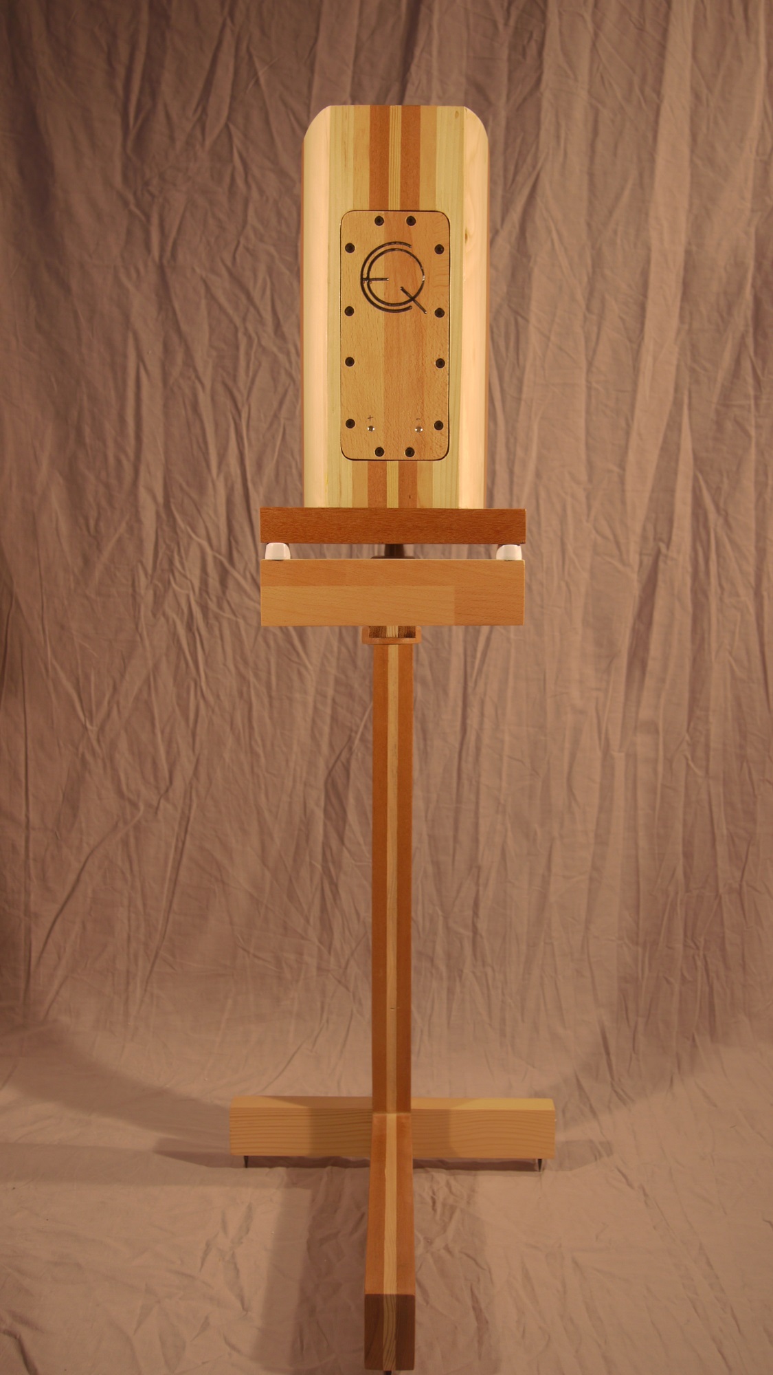 La petite Sœur. Elle a tout d'une grande. Malgré sa taille elle sait faire chanter tout les types de musiques. Accompagnée de son pied adapté en structure multidensité monté sur un point unique d'écoulement vibratoire pour garder la précision du registre grave